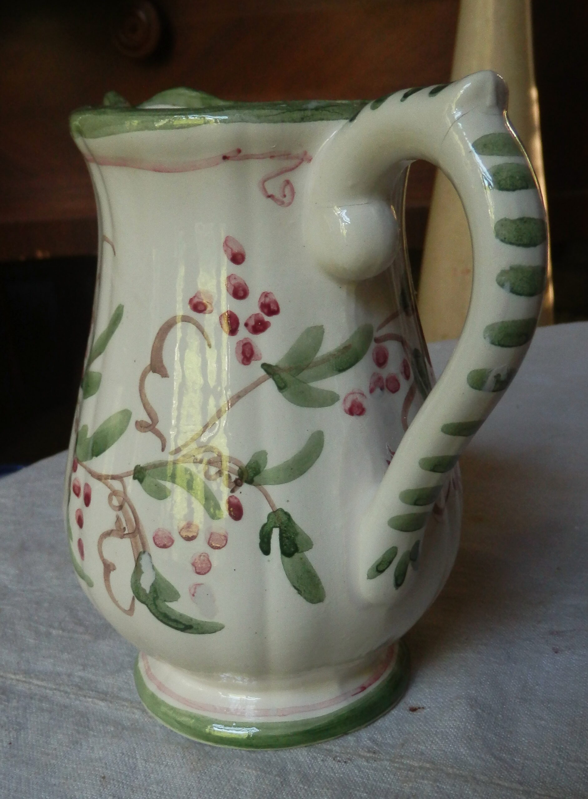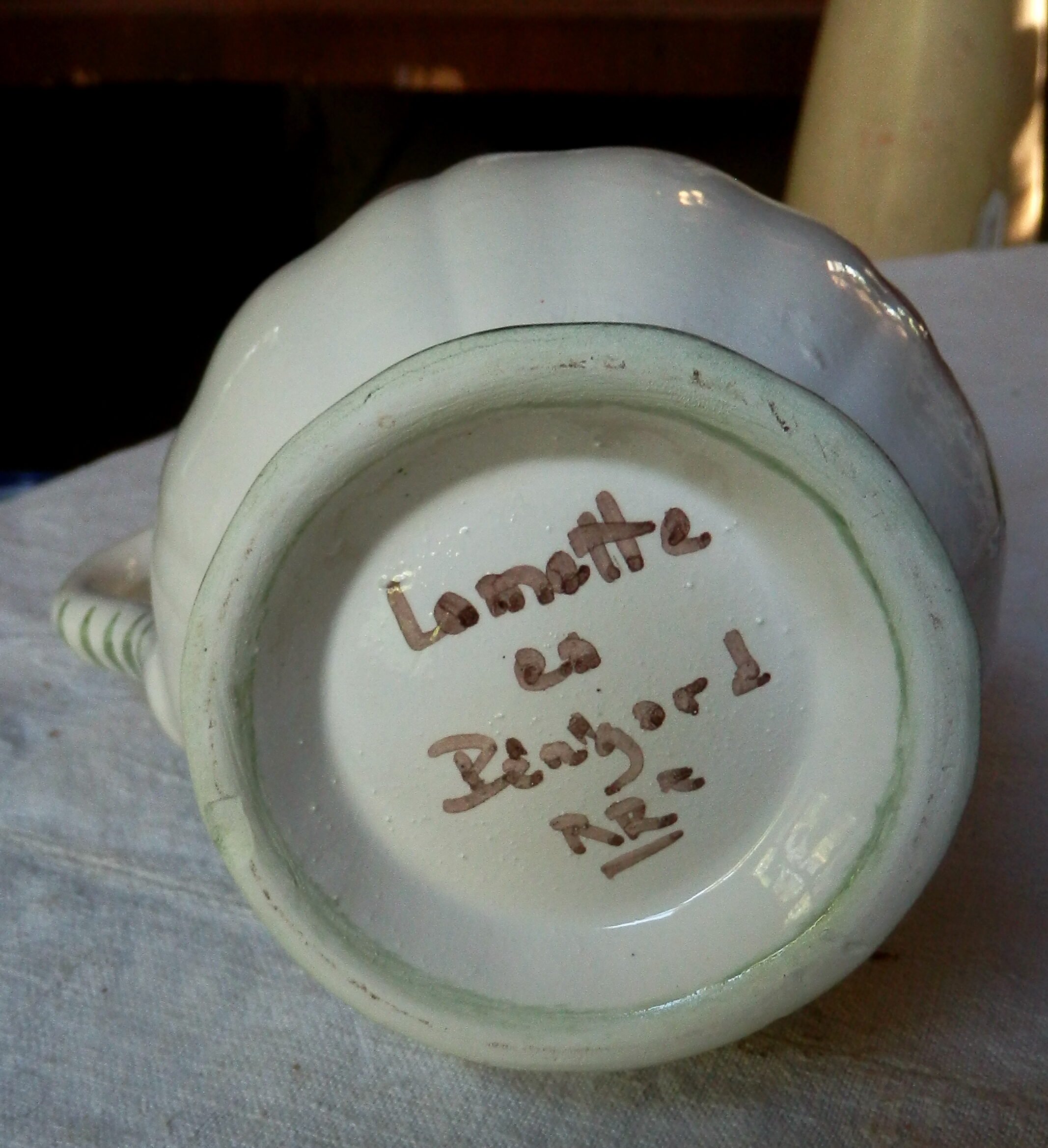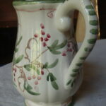 Pichet Louis XV, décor champêtre V2, peint « main levée » et signé RRt (Photos, non contractuelles, les commandes peuvent varier, les dessins étant à main levée) Décor sous couverte ( couleur ivoire)